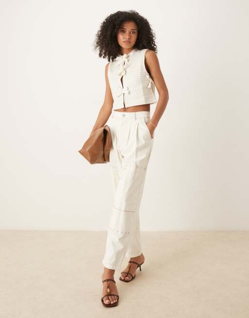 Ghospell – Kremowe spodnie z podwyższonym stanem, część zestawu