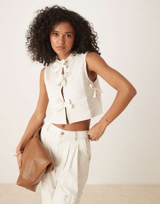 Ghospell – Kremowy top z kokardkami, część zestawu