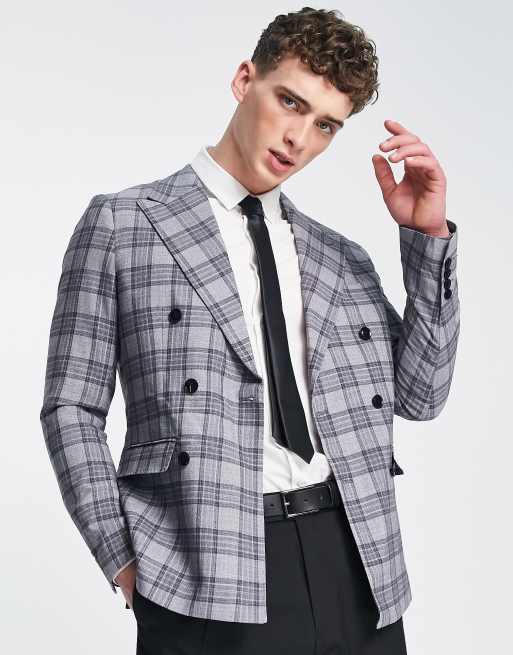 Gianni Feraud – Dwurzędowa marynarka garniturowa o obcisłym kroju w szarą kratę