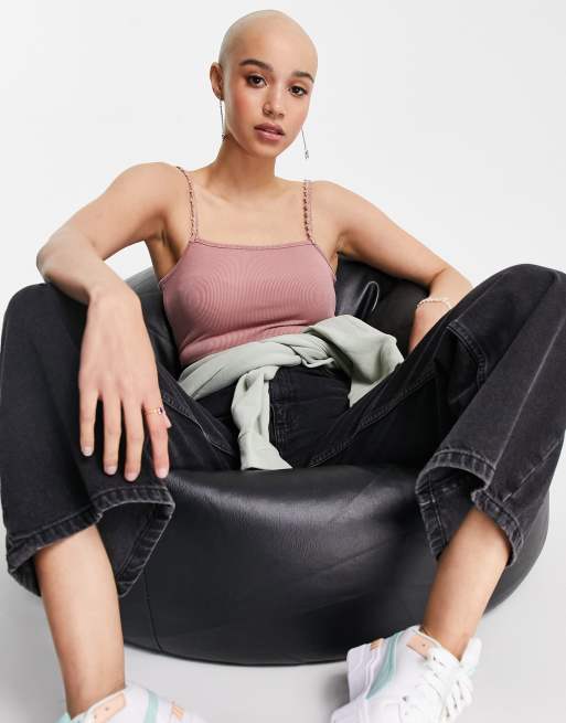 Gilli – Różowofioletowe prążkowane body z koronkowym wykończeniem