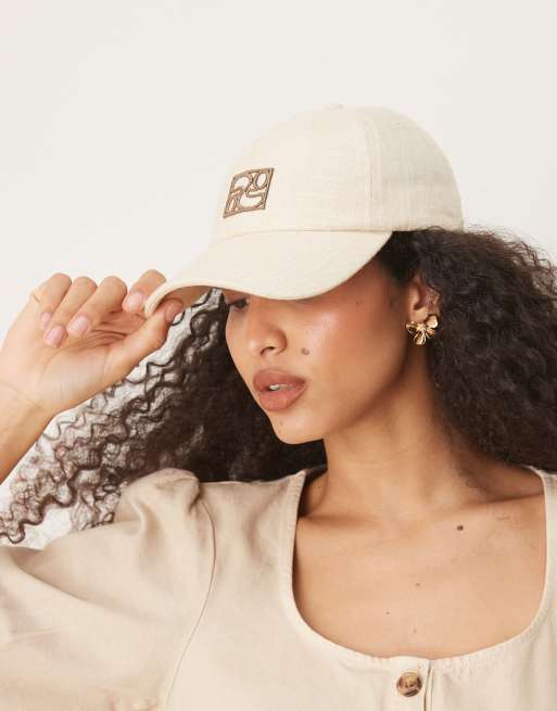 Gina Tricot – Beżowa czapka z daszkiem z haftem