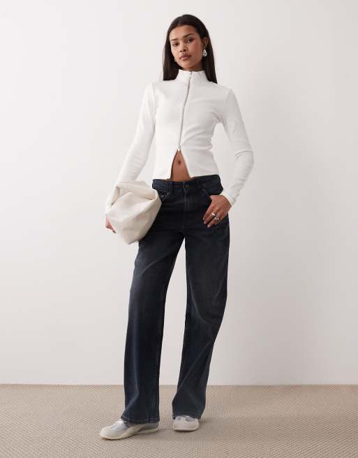 Gina Tricot – Biały top z dwukierunkowym zamkiem