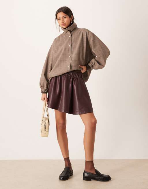 Gina Tricot – Bordowa spódnica mini z poliuretanu