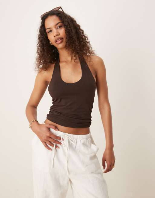 Gina Tricot – Brązowy top z dekoltem typu halter