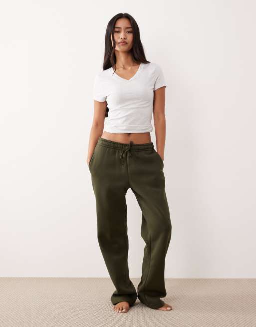 Gina Tricot – Ciemnozielone luźne spodnie dresowe z prostymi nogawkami