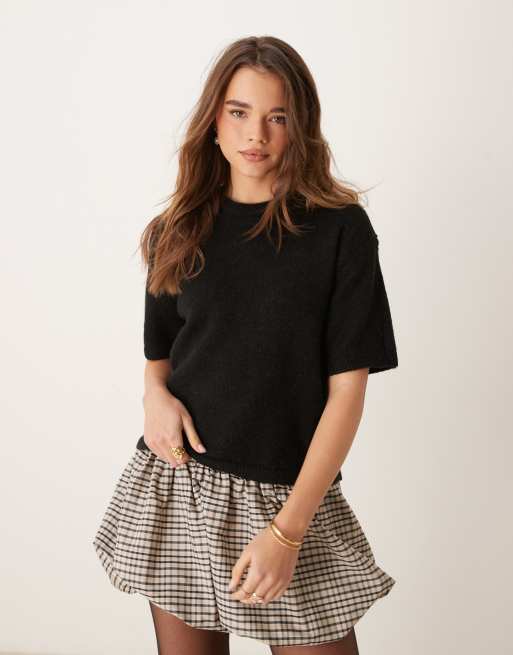 Gina Tricot – Czarny dzianinowy sweter z krótkim rękawem