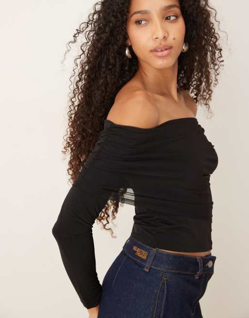 Gina Tricot – Czarny siateczkowy top z odsłoniętymi ramionami
