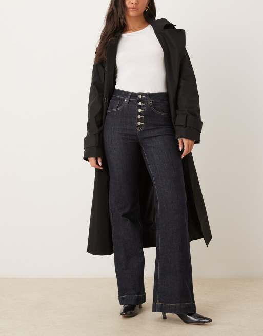 Gina Tricot – Dopasowane ciemnoniebieskie jeansy z rozszerzanymi nogawkami