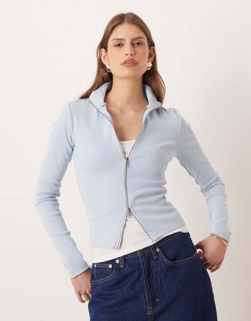 Gina Tricot – Jasnoniebieski top zapinany na dwukierunkowy zamek