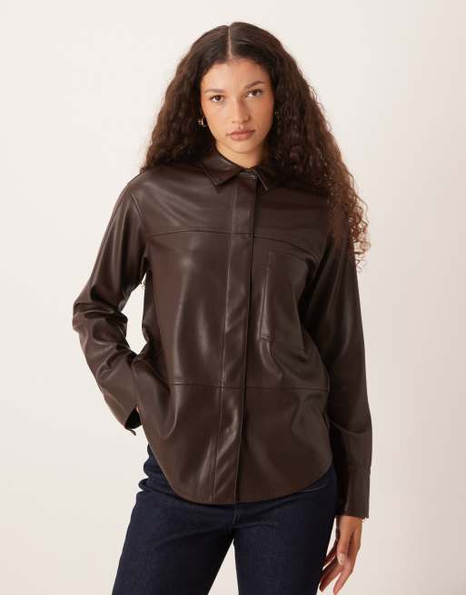 Gina Tricot – Luźna koszula z poliuretanu w kolorze ciemnoczekoladowego brązu