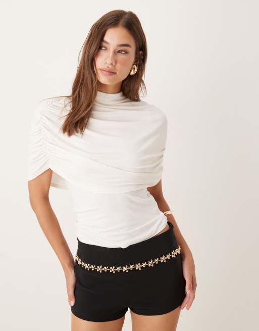 Gina Tricot – Marszczony biały top z krótką pelerynką