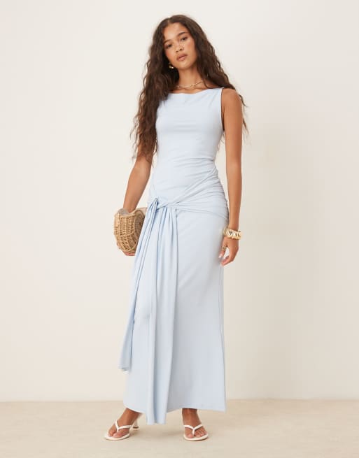 Gina Tricot – Miękka jasnoniebieska sukienka maxi z węzłem z przodu