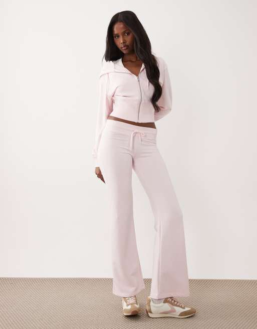 Gina Tricot – Mieszaj i łącz – Różowe dopasowane spodnie dresowe z niskim stanem