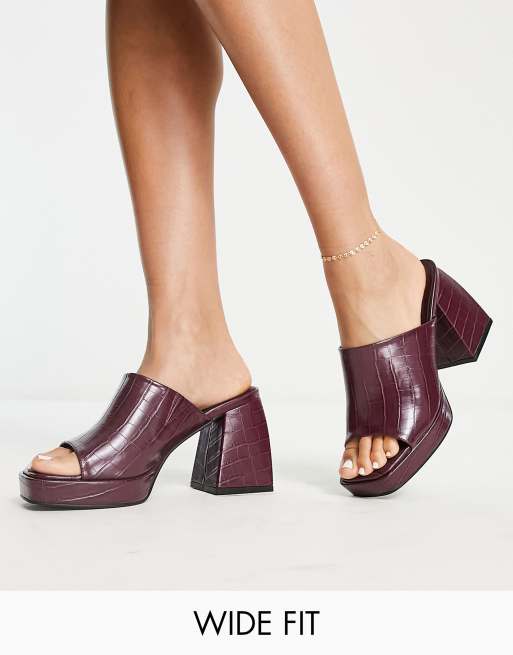 Glamorous Wide Fit – Bordowe klapki na grubej podeszwie z imitacji skóry krokodyla