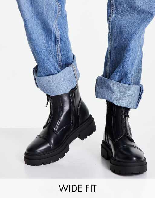 Glamorous Wide Fit – Czarne botki na płaskiej podeszwie z suwakiem z przodu
