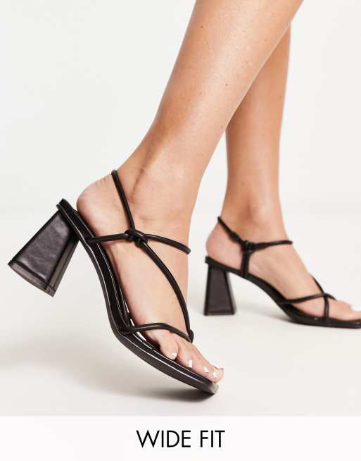 Glamorous Wide Fit – Czarne sandały na średnim obcasie z ozdobnym węzłami