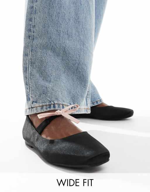 Glamorous Wide Fit – Czarno-kremowe balerinki z kokardką