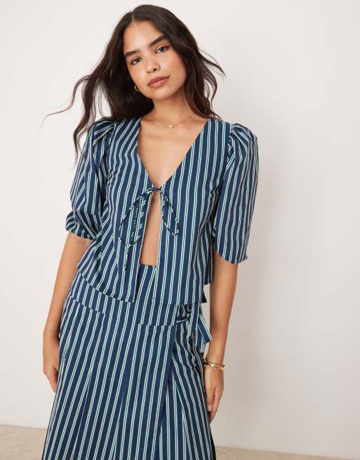 Glamorous – Bluzka z obszernymi rękawami, wiązaniem z przodu i wzorem w zielone paski, część zestawu