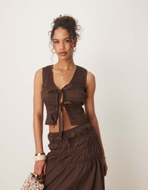 Glamorous – Brązowy marszczony top z wiązaniem z przodu, część zestawu