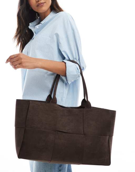 Glamorous – Ciemnobrązowa duża torba typu tote z imitacji zamszu o plecionej strukturze