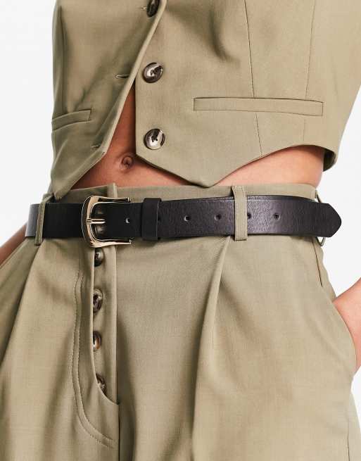 Glamorous – Czarny klasyczny pasek ze złotą klamrą