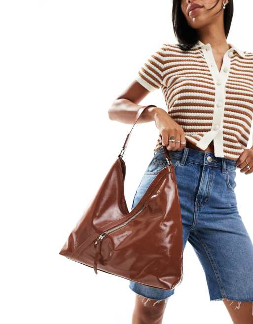 Glamorous – Czekoladowobrązowa torba typu tote z asymetrycznym zapięciem na zamek
