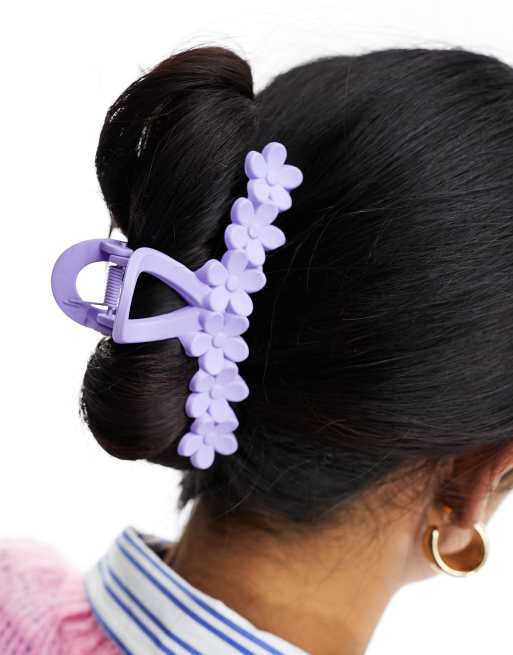 Glamorous – Fioletowa klamra do włosów z motywem kwiatków