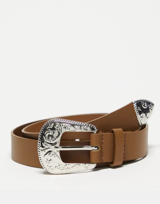 Glamorous – Jasnobrązowy pasek do jeansów z klamrą w kowbojskim stylu na talię i biodra