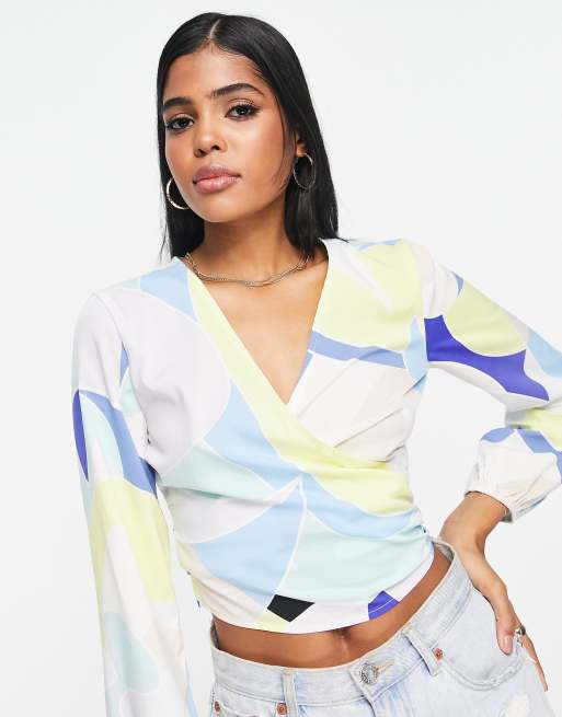 Glamorous – Kopertowa bluzka z długimi rękawami w abstrakcyjny wzór w stylu retro
