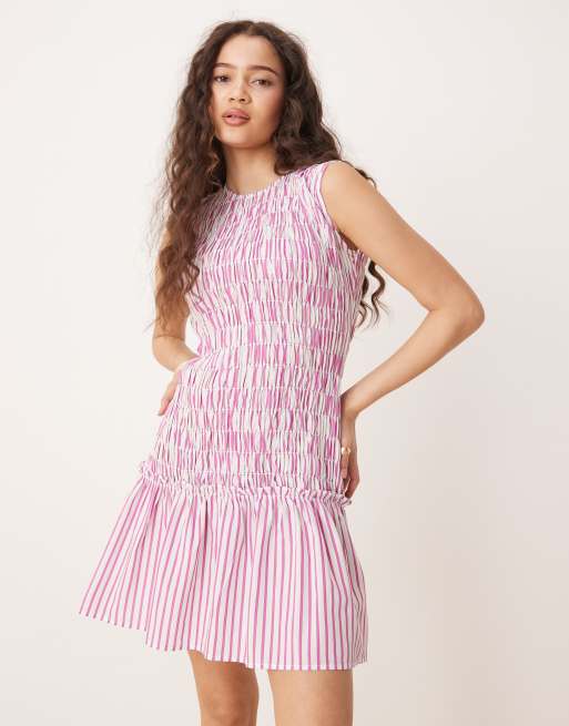 Glamorous – Marszczona sukienka mini z obniżonym stanem w różowe paski