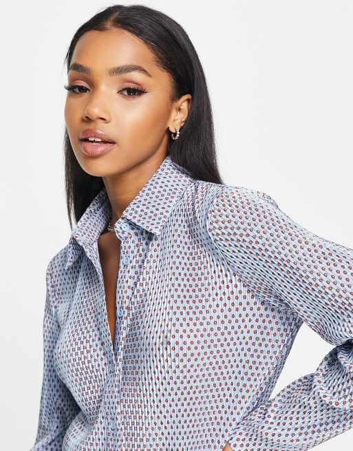 Glamorous – Niebieska plisowana koszula w kropki, część zestawu