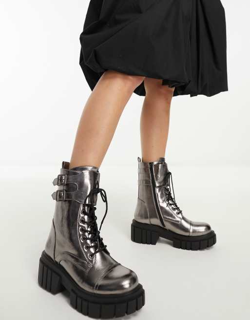 Glamorous – Stalowe buty do kostki na masywnej podeszwie