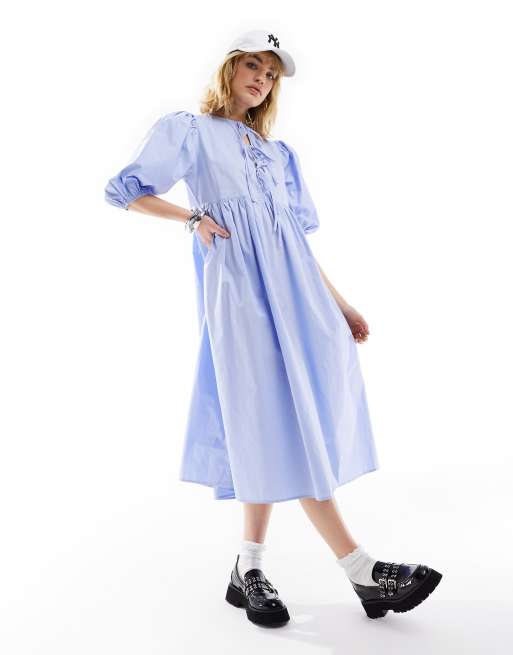 Glamorous – Wiązana z przodu luźna sukienka midi w drobne niebieskie paski