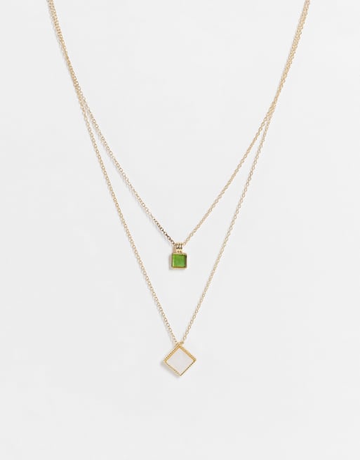 Glamorous – Wielowarstwowy naszyjnik ze sztucznym perydotem i emaliowanym opalem