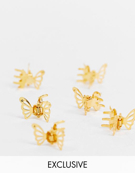 Glamorous – Zestaw 6 spinek do włosów z motylkami w kolorze złota