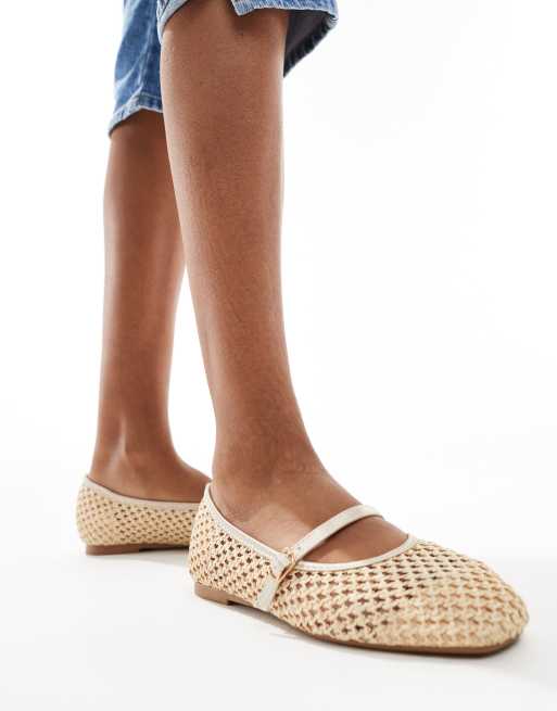 Glamorous – Złote balerinki z siateczki z rafii