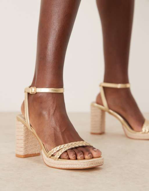 Glamorous – Złote plecione sandały espadryle na obcasie