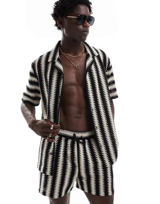 Goldsboro – Czarno-biała koszula plażowa z kołnierzykiem kubańskim