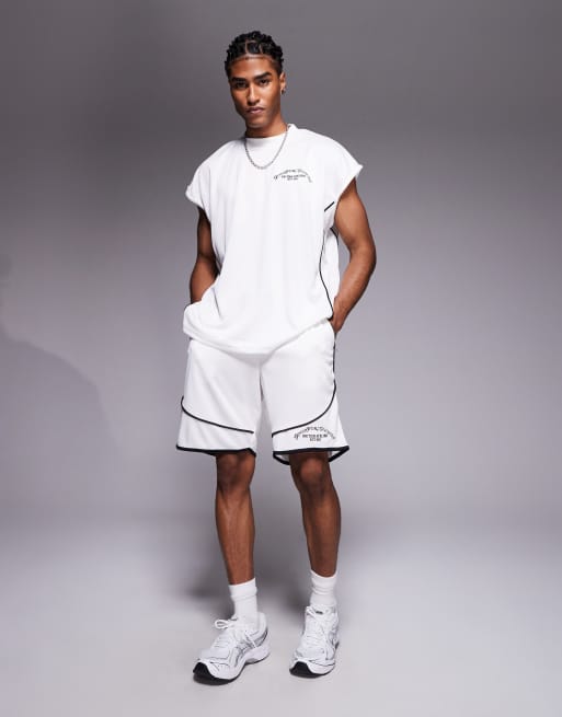 Good For Nothing – Beżowe szorty letnie z siateczki z czarną lamówką, część zestawu