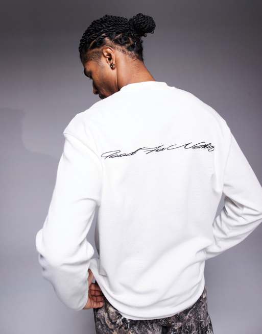 Good For Nothing – Biały T-shirt oversize z długimi rękawami o waflowej strukturze z haftowanym logo