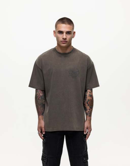 Good For Nothing – Brązowy T-shirt oversize z nadrukiem anioła na plecach