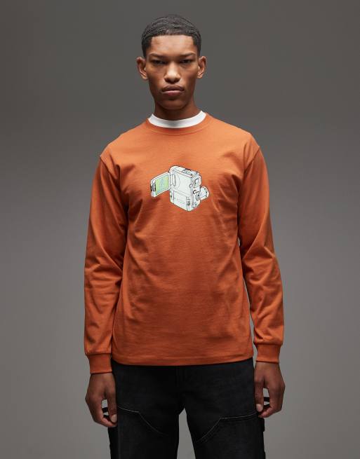 Gramicci – Ciemnopomarańczowy T-shirt z długimi rękawami i nadrukiem kamery