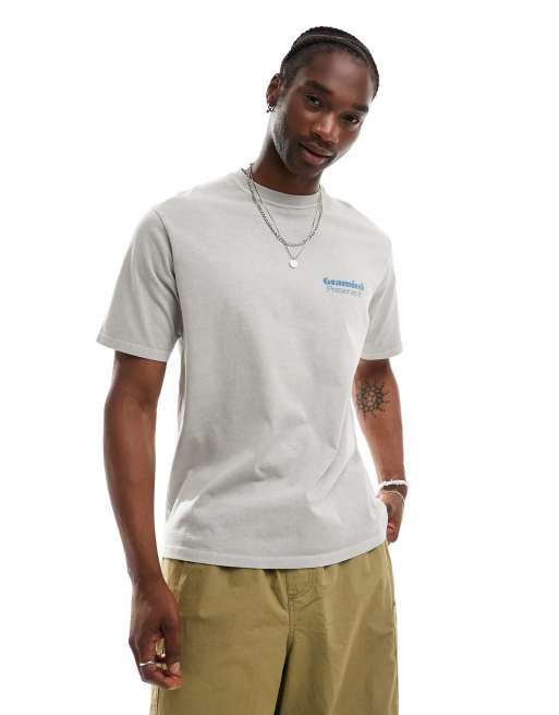 Gramicci – Preserve It – Szałwiowy T-shirt z rozcięciem i logo