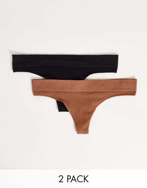 Green Treat – Zestaw 2 par bezszwowych prążkowanych stringów w kolorze kawy z mlekiem i czarnym