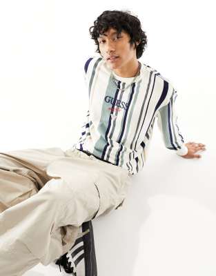 Guess Originals – Jan – Kremowy T-shirt z długimi rękawami w paski