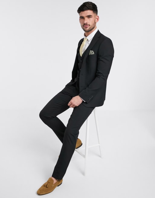 Harry Brown – Czarny, gładki garnitur o dopasowanym kroju