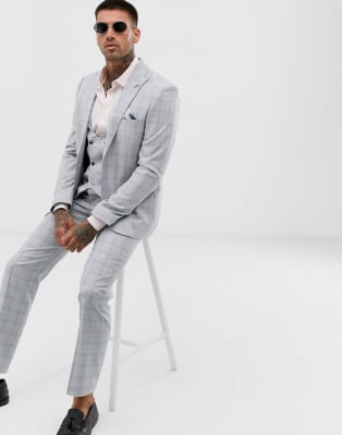 Harry Brown – Szaroniebieski dopasowany garnitur ślubny w kratę