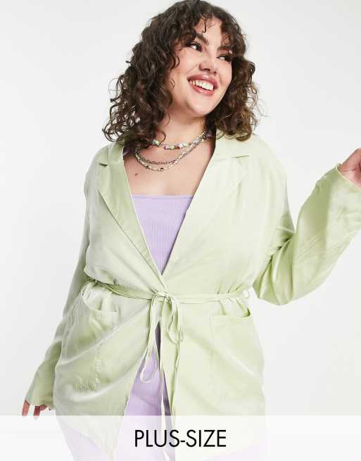 Heartbreak Plus – Szałwiowa marynarka wiązana w talii