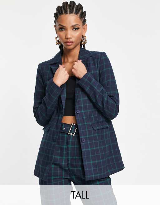 Heartbreak Tall – Obszerna marynarka o kroju boyfriend w granatowo-zieloną kratę