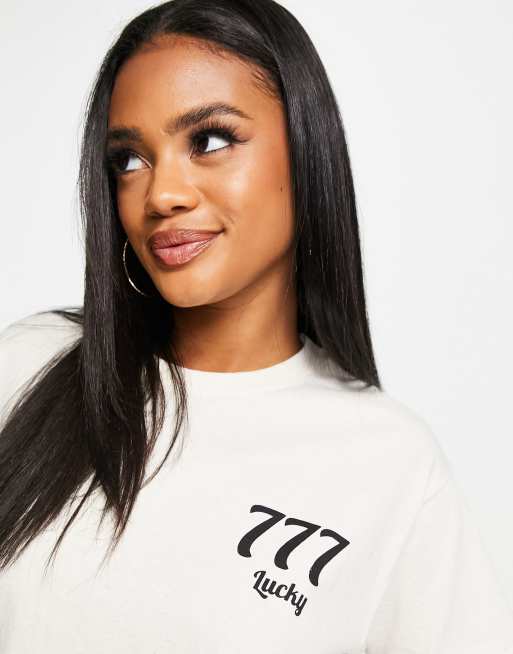 Heartbreak – Beżowy T-shirt oversize z nadrukiem